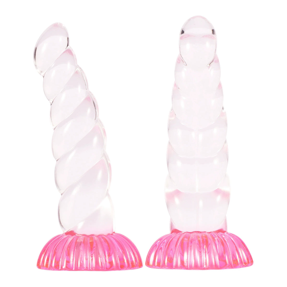 Ribbed Anal Plug Clear Unicorn Horn Dildo