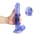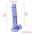 Transparent Appearance: This blue-purple dildo features a semi-transparent appearance with realistic details. The large, smooth glans delivers initial stimulation, while the raised veins provide a continuous, massaging pleasure.