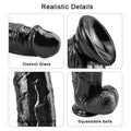 - Realistic Details: The appearance of this bbc Dildo is designed with realistic details, featuring a sculpted head and protruding veins that stimulate pleasure zones within. The balls at the base ensure safety and provide impact to external sensitive areas when fully inserted.