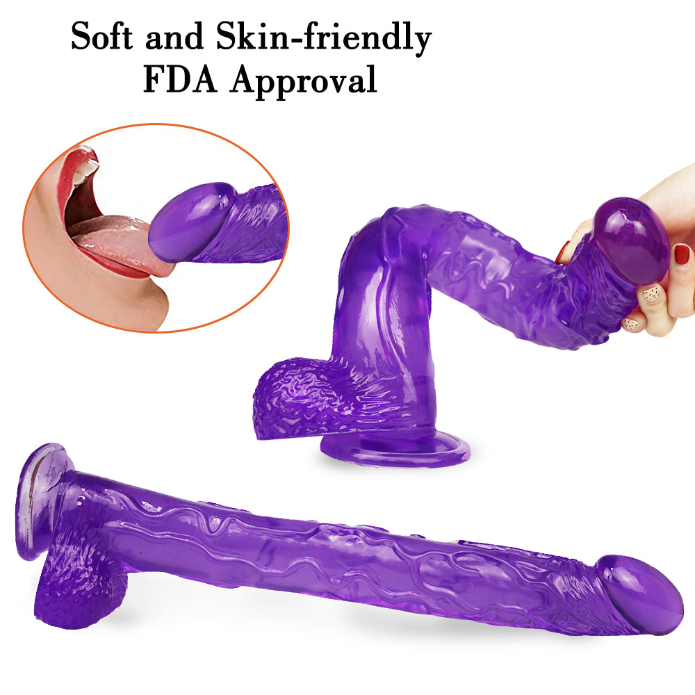 - Realistic Texture: This purple translucent jelly dildo features a large, rounded glans that gently but firmly hits your G-spot, while the deeply textured veins provide a comfortable massage to all your pleasure zones.
