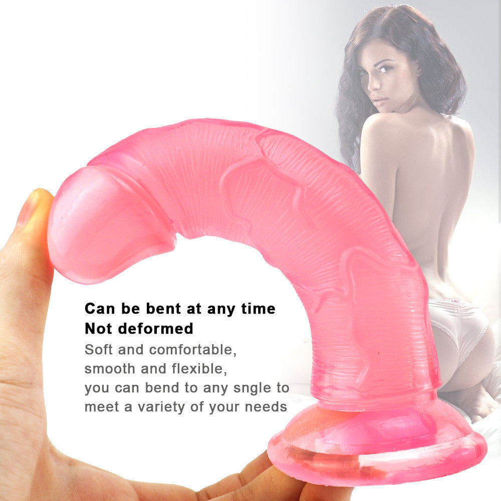 The 6-inch Pink Clear Jelly Dildo is a visually appealing, transparent sex toy that appears "light, soft, and approachable." It's perfect for beginners or those on a budget. It's 6 inches long, allows for 5 inches of insertion, and has a diameter of 1.37 inches. Its jelly material is flexible and resilient, making it a very cost-effective option.The slightly curved design allows for precise G-spot stimulation, while the realistic texture enhances friction. The attractive pink, transparent dildo makes penetrative sex more eye-catching and relaxing.