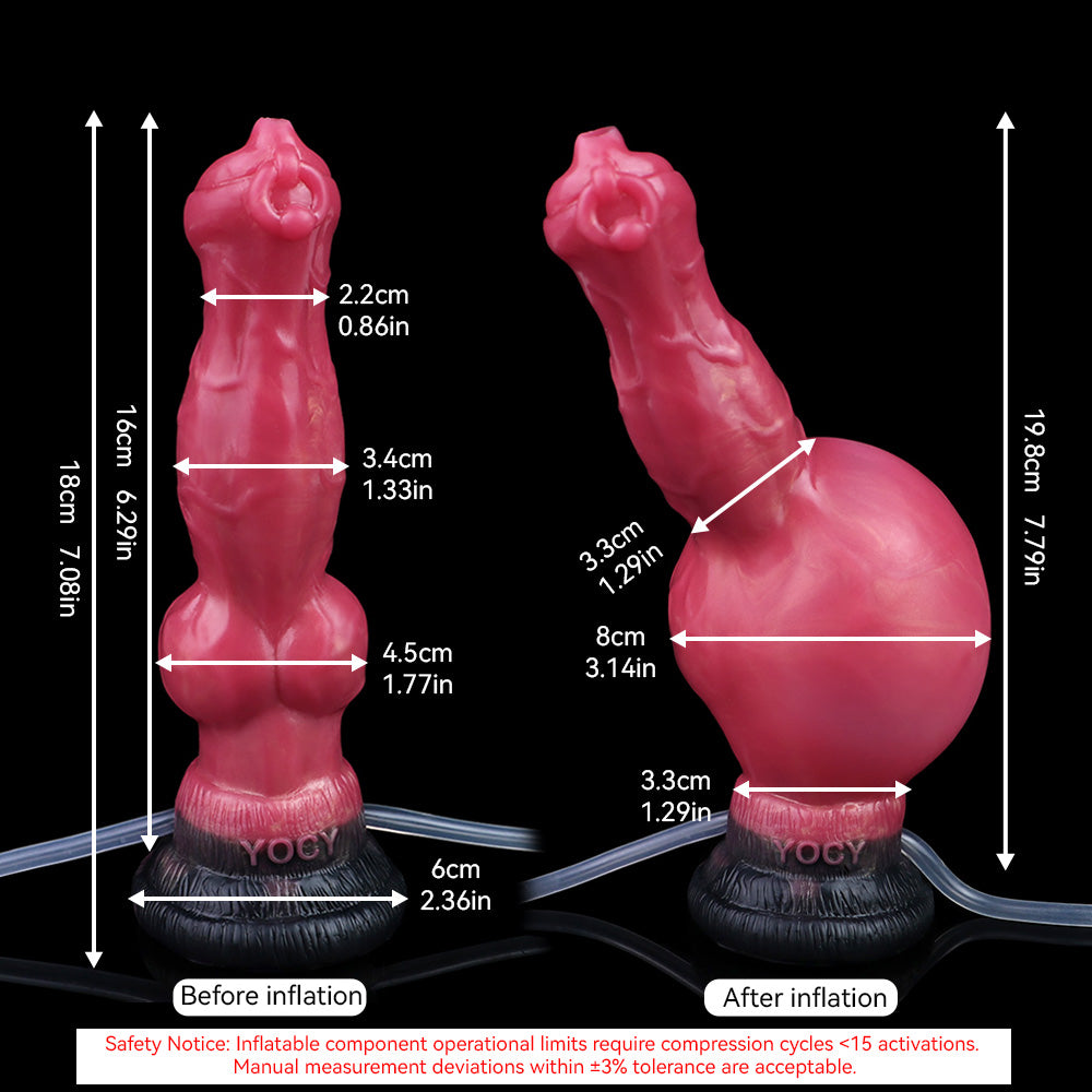 Safe Material: The Dog Inflatable Squirting Dildo is made of platinum silicone. Soft, flexible, and body-friendly, it provides a safe and comfortable experience for even the most intense intercourse.