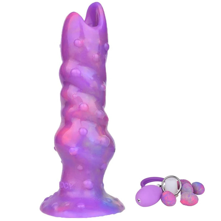 This 8-inch knotted egg-laying dildo" only provides unique, soft, and glows at night for users who like fantasy games and creative feelings. The egg-laying function is completed independently by the air pump. Each set of egg-laying device is independently equipped with 5 luminous eggs, which can be played at night. The unique knot spiral pattern adds surprises for users who like excitement. Don't worry, you will be satisfied.