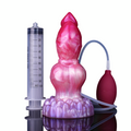 This gradient rose pink to pearl white dog squirting dildo combines an ornate knot textured shaft with a purple lotus petal base for a dreamy, Oriental aesthetic. Its 100 ml syringe and hand pump system deliver fully customizable “ejaculation” simulation just fill with warm water or lube for injection, lubrication, and easy cleaning. Medical grade silicone construction is soft, non-toxic, odorless, and fully waterproof for use anywhere even in the shower while the wide lotus shaped suction cup base locks securely to any smooth surface for truly hands free, multi angle play.