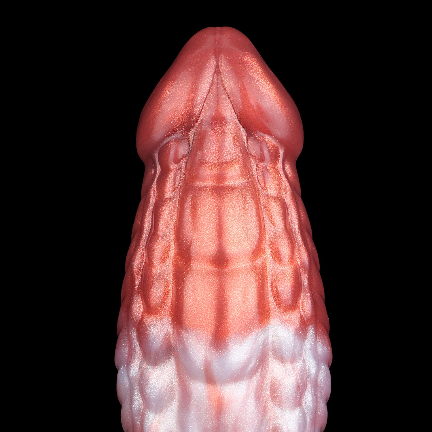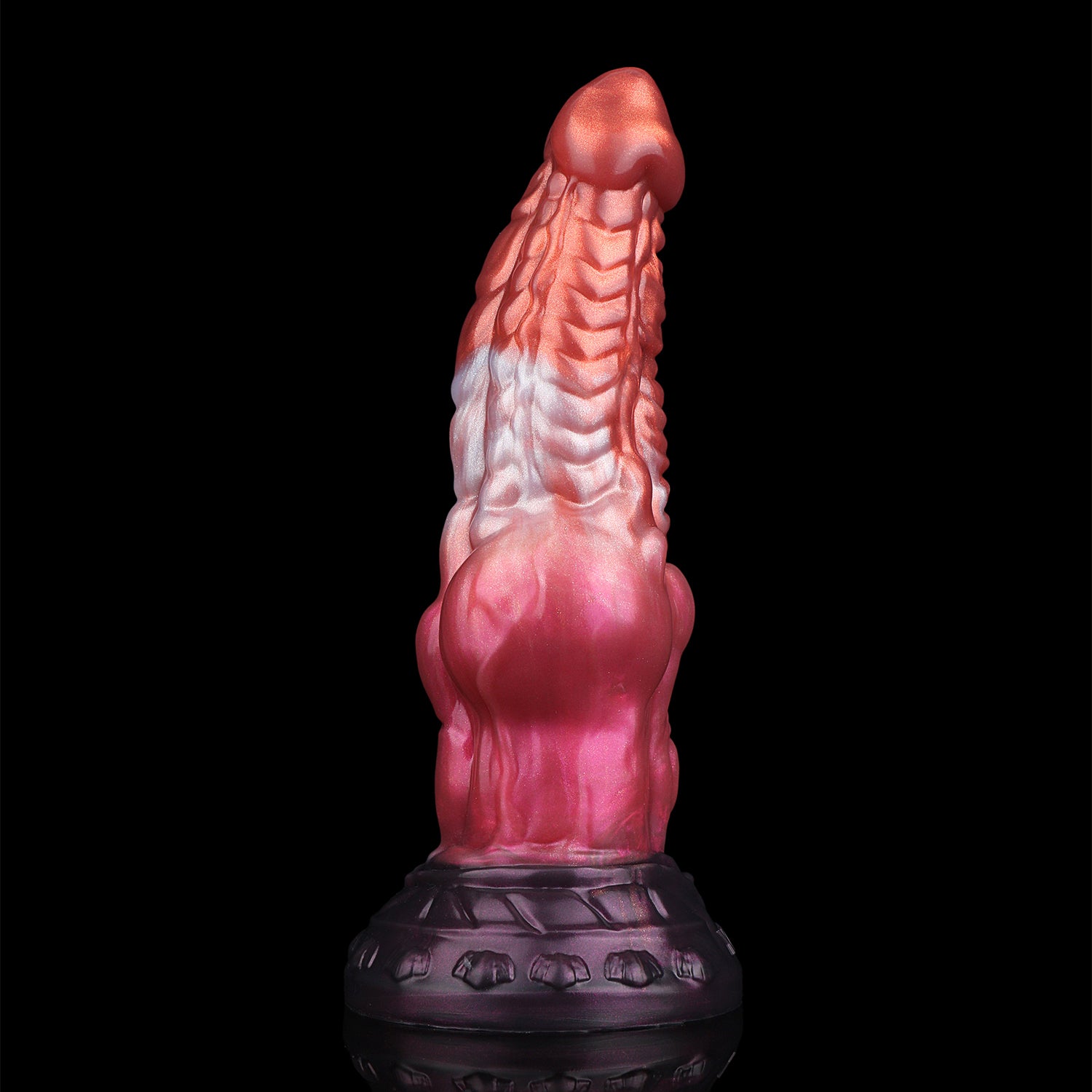 With a total length of 9.76 inches, this toy offers an extraordinary size, perfect for those who crave something beyond the ordinary. The tip is shaped to resemble a realistic glans, soft and easy to insert. The midsection features dragon-scale ridges for added friction, while the base incorporates a knotted design, creating a full and stimulating sensation.