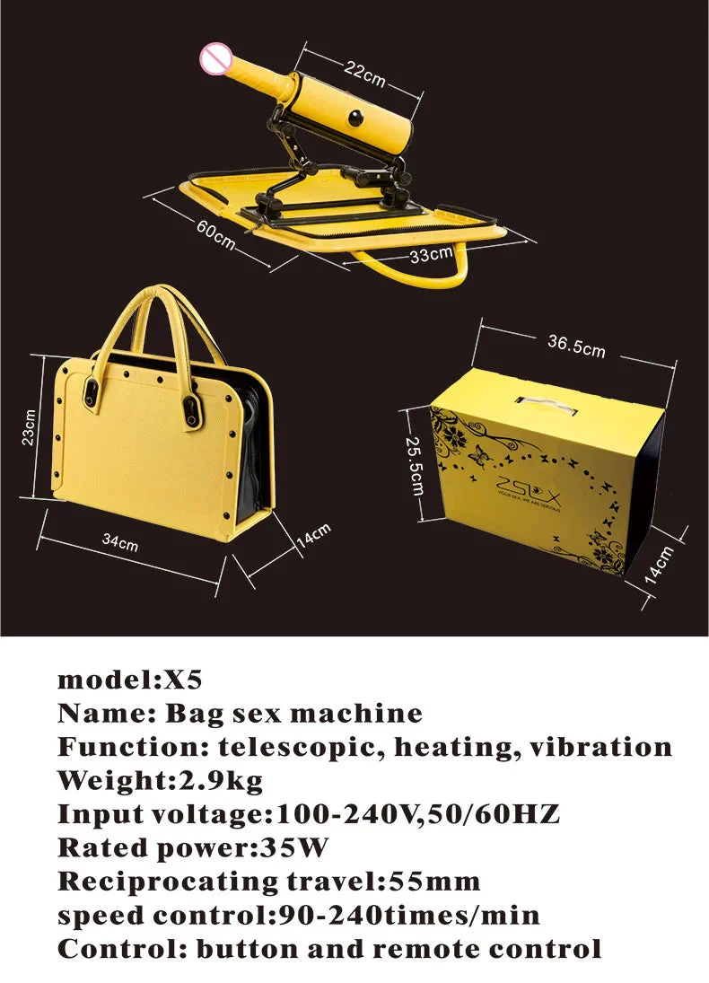 No matter where you go, this portable bag sex dildo machine can go with you. It looks like a leather bag from the outside, but when you open it, it will be a sex machine with remote control speed to customize your feeling.