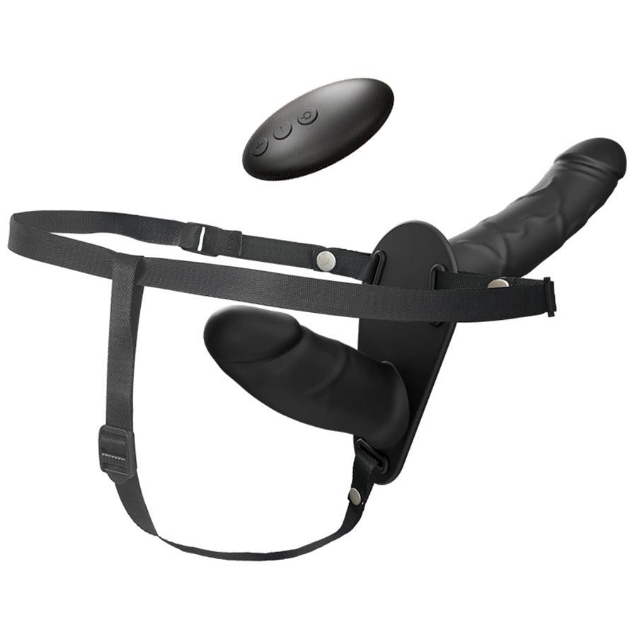 This is a double headed interactive dildo with straps. It can be used by one person or two people at the same time. With a remote control and 10 vibration modes, multiple people can climax at the same time. When used with straps, there is no need to worry about the risk of detachment. Customize your private experience according to your gear!
