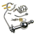 This is a multifunctional anal hook, uniquely designed with a male chastity cage that includes a secure lock, offering true restraint functionality for advanced BDSM play.