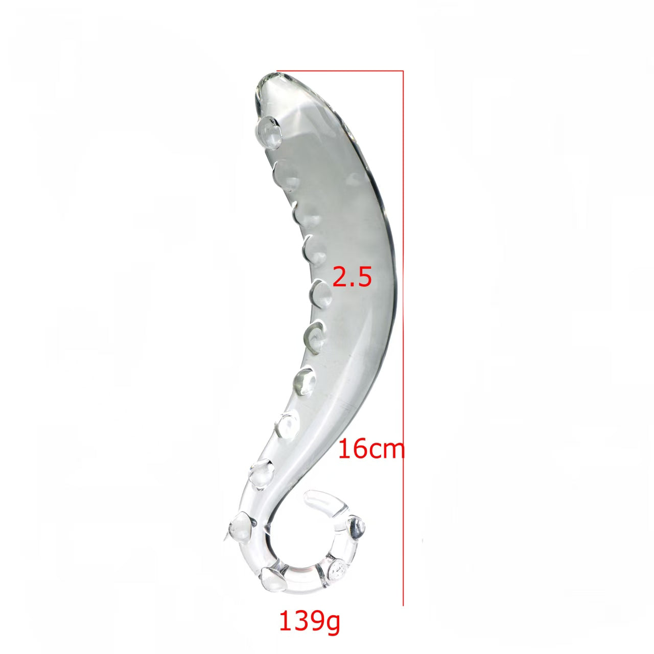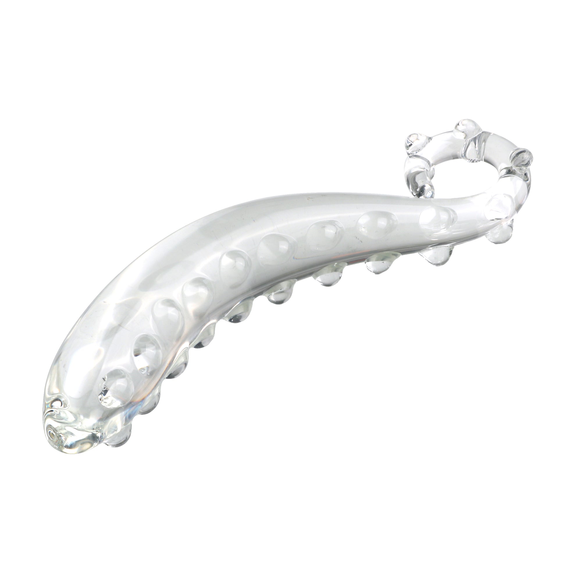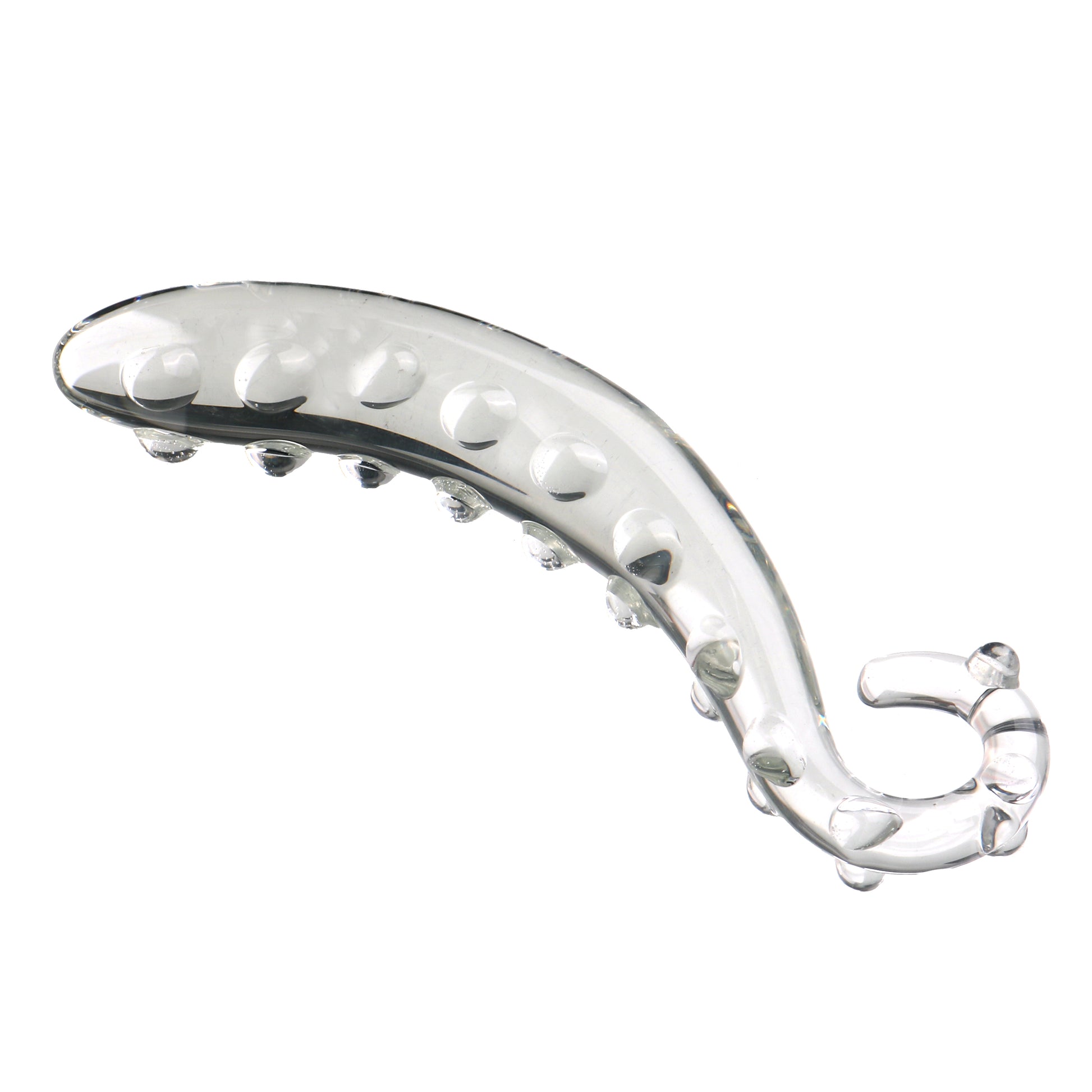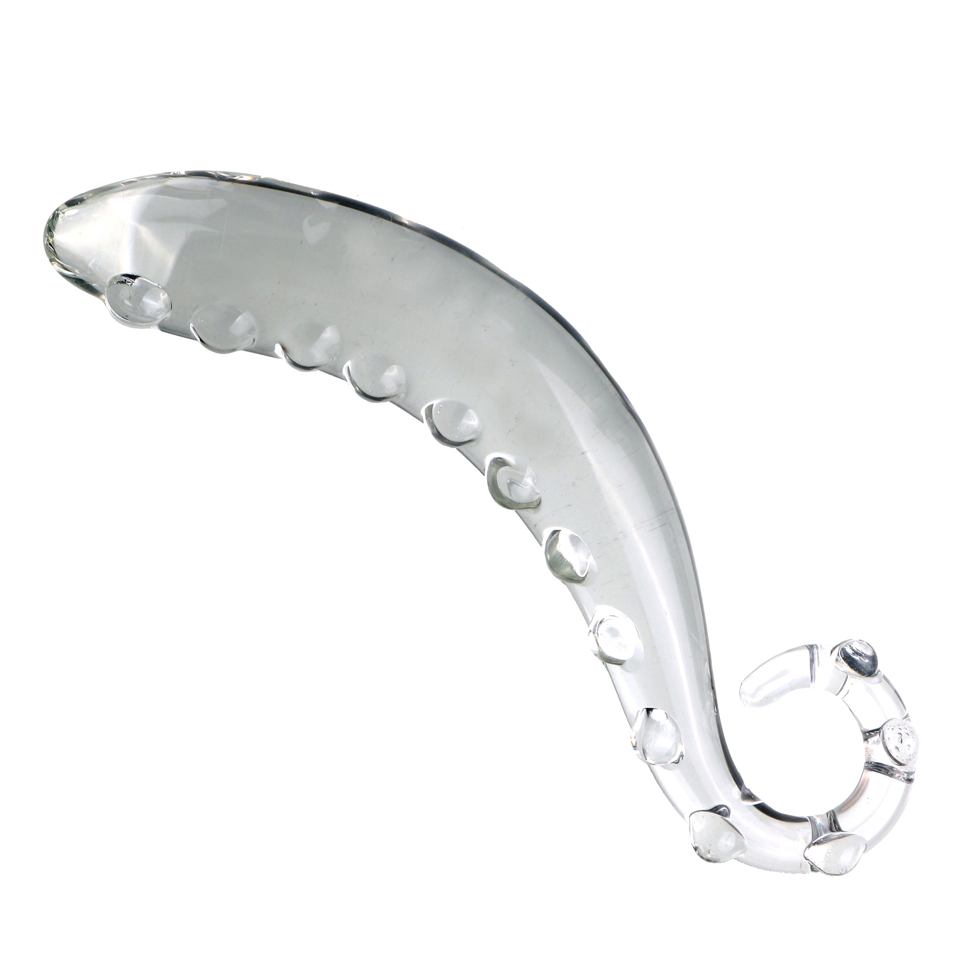 Unleash your fantasies with this beautifully crafted clear tentacle glass dildo. Designed with a unique tentacle-inspired shape, it features raised bumps along the smooth glass surface that deliver enhanced friction and deep stimulation with every thrust. The curved shaft is perfectly shaped to target your G-spot or P-spot, while the curled tail at the end offers extra control and teasing sensations. The detailed texture and striking design make it both visually captivating and physically satisfying.