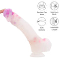 - The 7-inch insertable confetti dildo offers both visual and tactile stimulation.