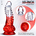 Release Your Fantasies with the Scaly Texture Clear Dragon Sex Toy. This captivating toy features a unique transparent design that transitions from crystal clear to fiery red, embodying the fierce allure of a dragon. Raised scales mimic dragon skin, adding a distinct tactile experience for intense stimulation.
