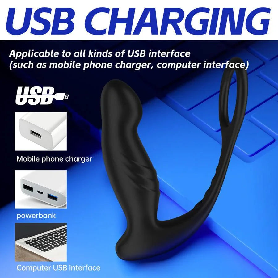 Finger Tapping Prostate Massager with Penis Ring Vibrator