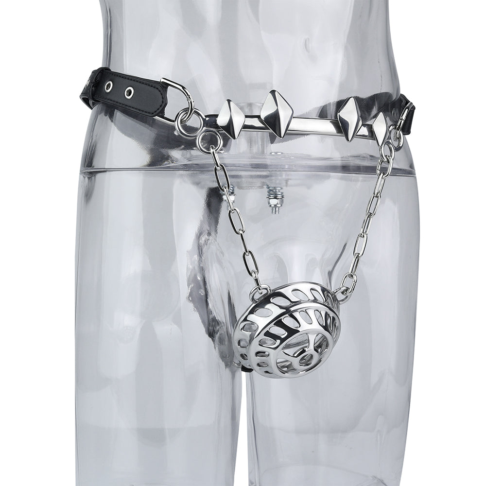 Metal Male Flat Chastity Cage With Belt