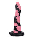 Cobra Inspired Design: This fantasy snake dildo features a striking black and pink color contrast, inspired by the cobra's iconic hood and body structure. The S shaped curved shaft is designed to hit multiple pleasure points simultaneously. The raised ridges on both sides of the head, modeled after the cobra's expanded hood, deliver intense friction as it penetrates your body, heightening the stimulation.