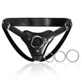 Premium Leather Triple Ring Black Strap On Harness