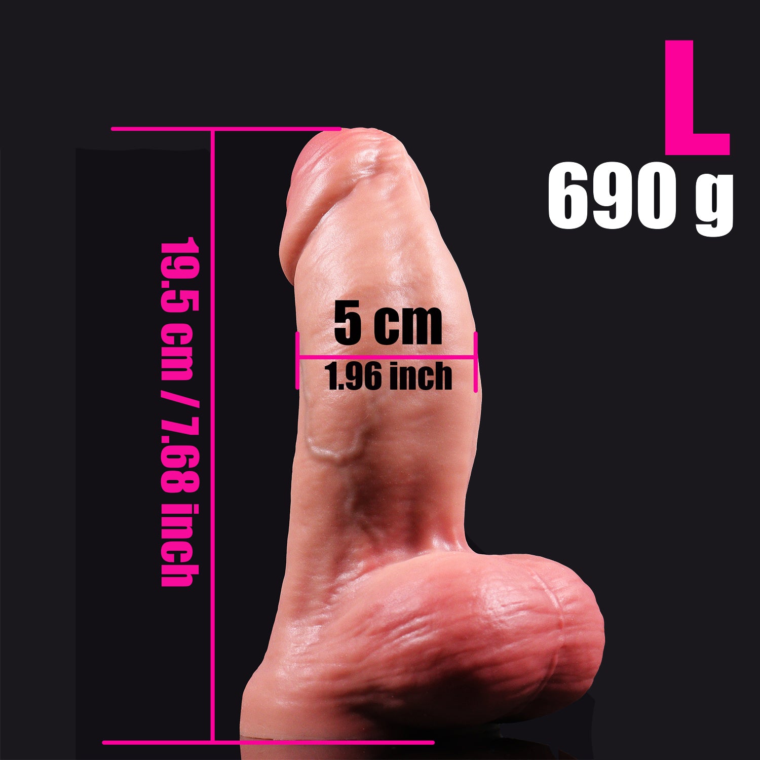XXL Bold, filling, and intense: 9.45 in length, 2.56 in diameter, 2.97 lb