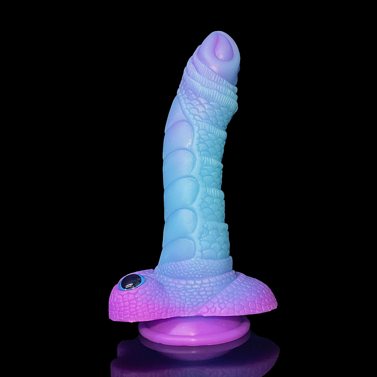 this glow in the dark alien monster dildo designed with a mix of dragon scales and textured ridges, this toy creates an irresistible combination of friction and stimulation, heightening sensations with every thrust. The slightly curved head targets your G-spot with precision, while the detailed eyes at the base add a playful yet mysterious touch.