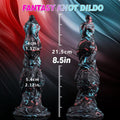 Unleash your wildest fantasies with this alien dog monster dildo—designed to deliver an intense and otherworldly experience. Its striking black base is accented with hypnotic blue and red ripples, resembling the mysterious patterns of deep sea. The alien dog dildo design features a tapered tip that easily slides inside while targeting your G-spot with precision. The two distinct knots, one smaller and one larger, create a thrilling stretching sensation as you take it deeper, leaving you craving more.