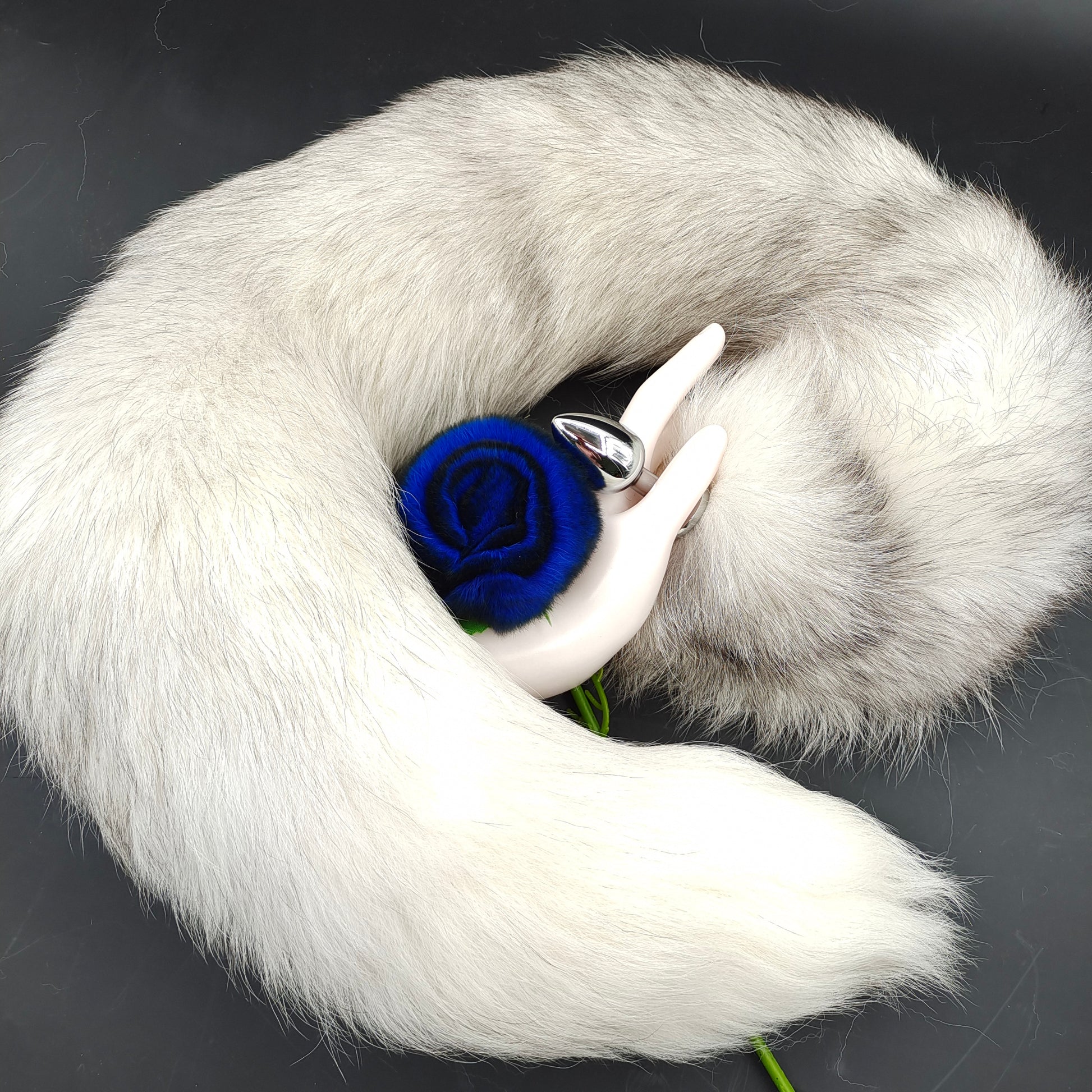 Embrace your inner seductress with our Snowy Fox Real Tail Set. Crafted from premium genuine fox fur, the tail features a graceful grey-to-white gradient that flows effortlessly, creating a mesmerizing, luxurious appearance. With its soft and silky texture, this tail moves seductively with every step, paired with a smooth stainless steel plug (available in 1.1", 1.3", and 1.57" diameter) for maximum pleasure.