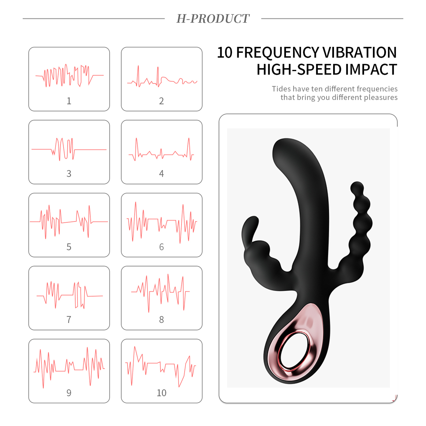 - 10 Frequency Vibration Modes: High-speed impact for different pleasure sensations.