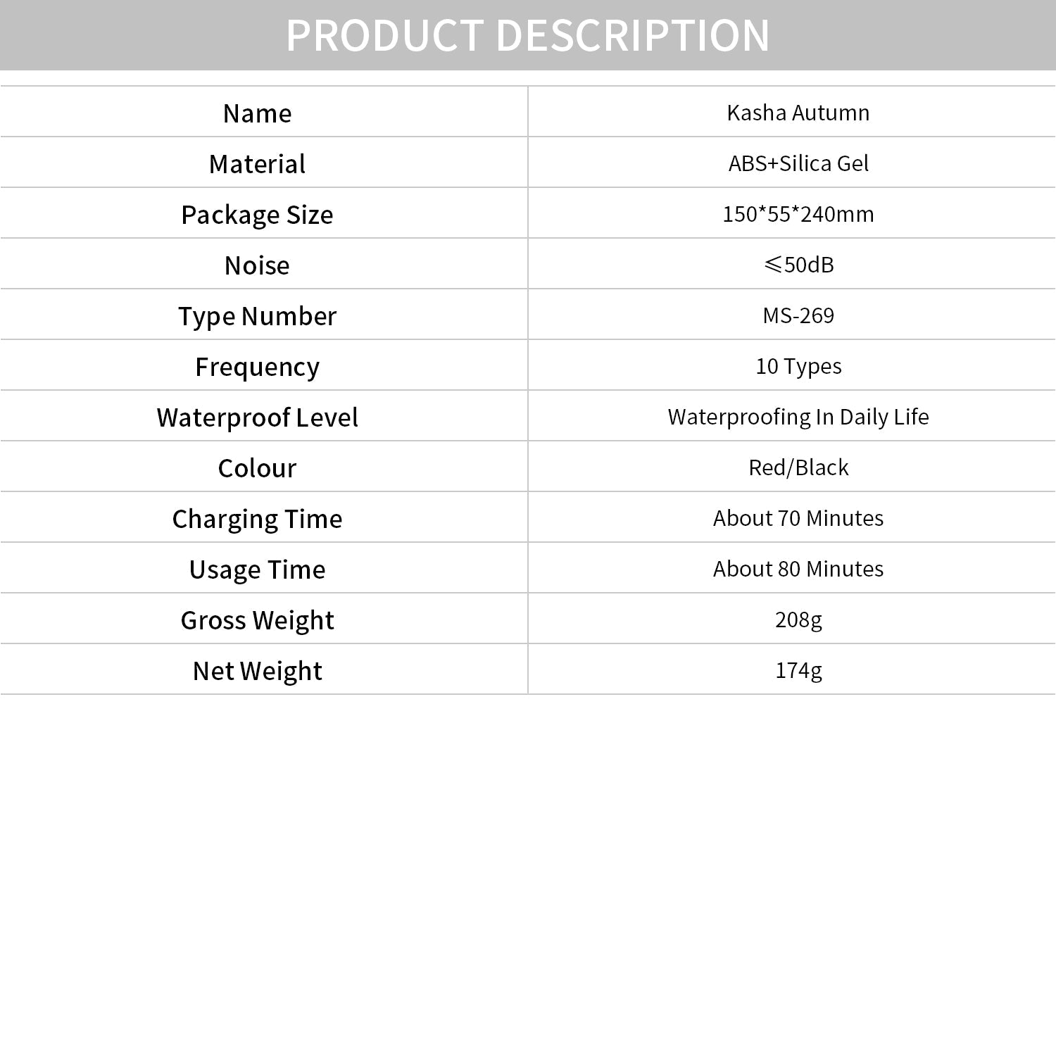 - Material: ABS + Silica Gel