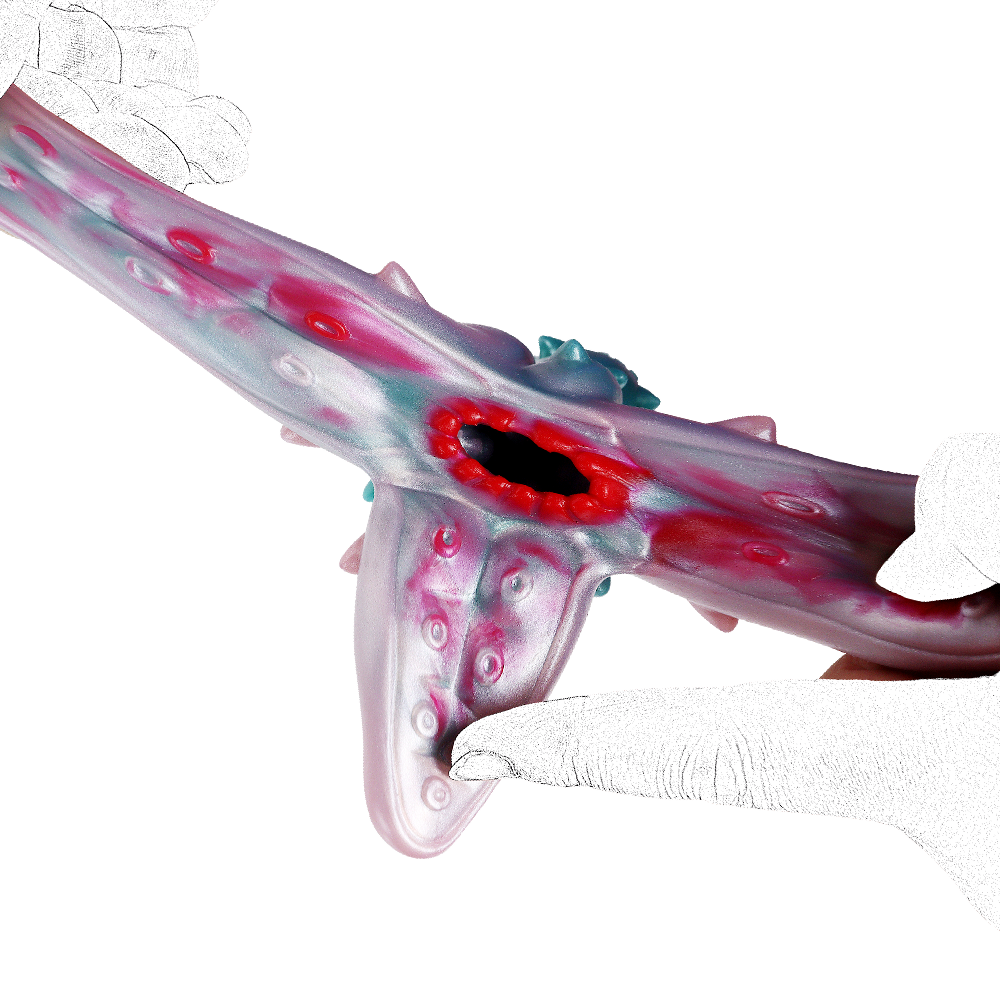 This Alien Fleshlight boasts a fantastical design, crafted from platinum silicone with a soft, velvety feel. Its appearance instantly transports you to a fantasy world. Its candy-colored design, covered in spikes, and deep-sea style, combined with exotic plants, invites you to embark on a challenging journey. A circular entrance adds a tight, enveloping feeling to the insertion port, and the gory entrance will draw you in. Grab this Alien Fleshlight and enter the battle for male masturbators.
