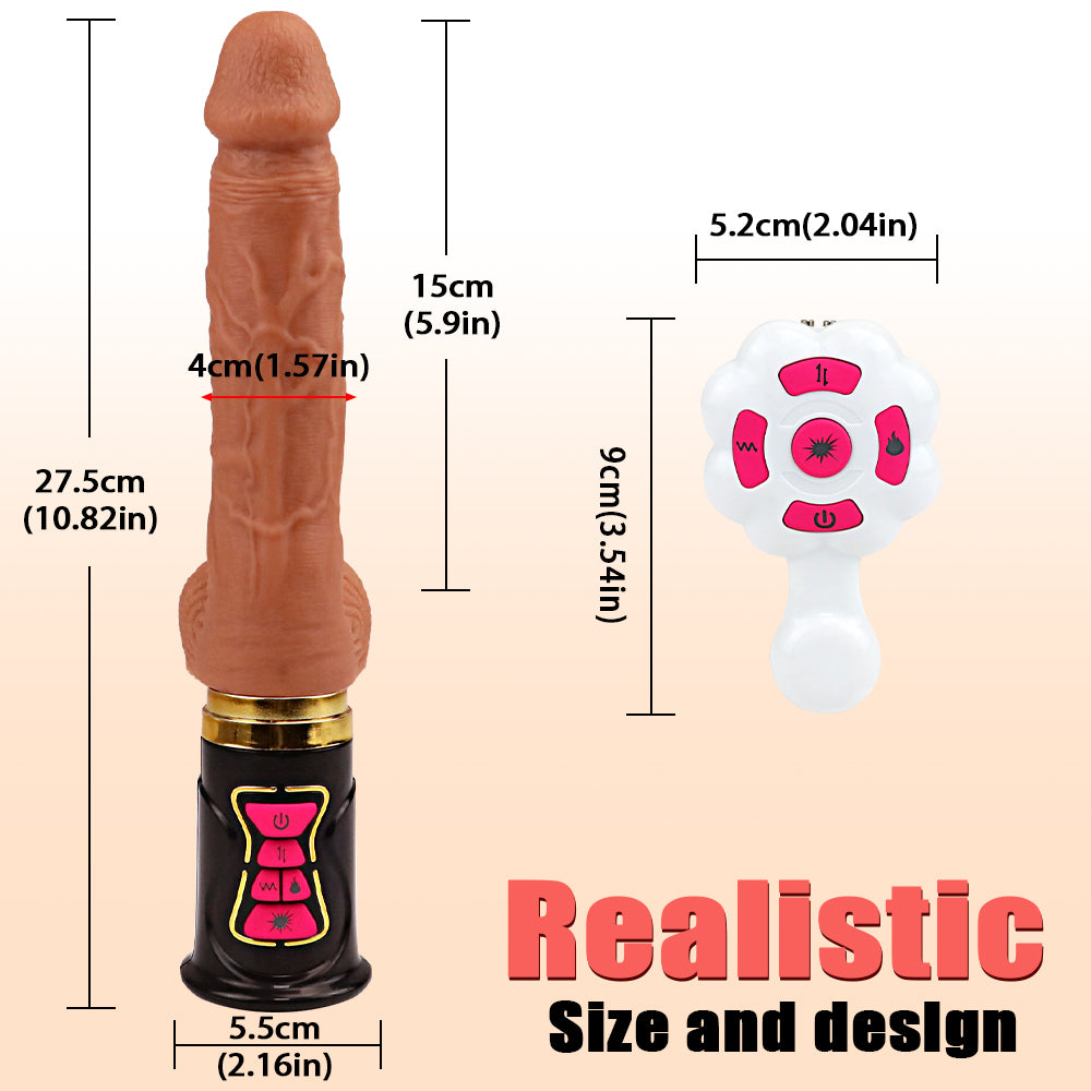 Realistic Design: With an insertable length of 6 inches and a diameter of 1.5 inches, this realistic thrusting dildo fills you up completely, satisfying your craving for a fulfilling stretch. The sculpted head is designed to target your G-spot directly, while the raised veins provide intense friction and stimulate every sensitive spot as the thrusting pattern changes.