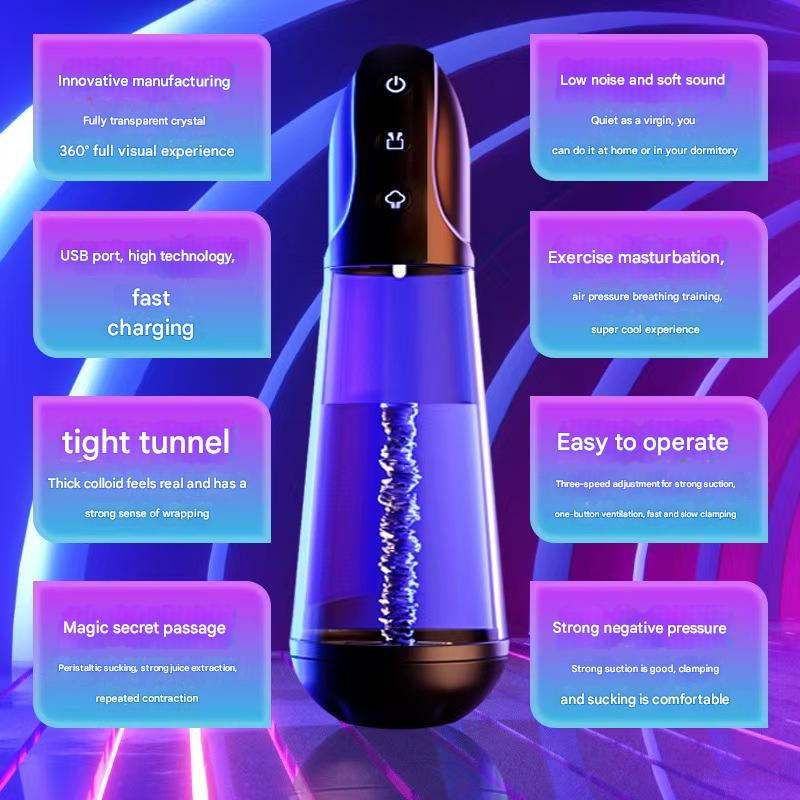 - Smart Design: Featuring a sleek, transparent crystal body, this Male Masturbator toy offers a 360° visual experience, allowing you to fully enjoy the sight of your pleasure. The clear design provides complete visibility, letting you watch every moment of the action as the toy works its magic. The intricate, see-through structure adds an element of excitement and immersion, enhancing both the visual and physical pleasure.